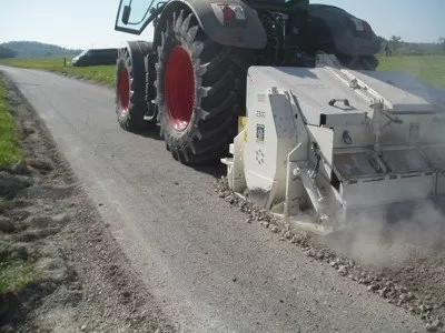 Takto připravený materiál je dále upravován buď stabilizační fréze HEN S.P. 21 nebo pomocí grejdru a samostatných vibračních desek. Pro hluboko rozfrézovaný povrch je někdy nutné použít pro dokonalejší utužení vibrační válec.
